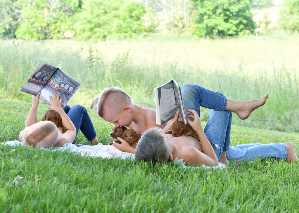 When we got married, Lindsay moved to Ohio from Kansas where Eric works as a manager for FirstEnergy, and Lindsay is a stay at home mom to Kaily, Will, Drew & Tyler. She also volunteers at the local school where our kids attend, and snuggles and cares for our puppies. Together, we have 15 years of experience, breeding and raising dogs. We’d love to get to know you and look forward to having you bring home the perfect puppy for your family.